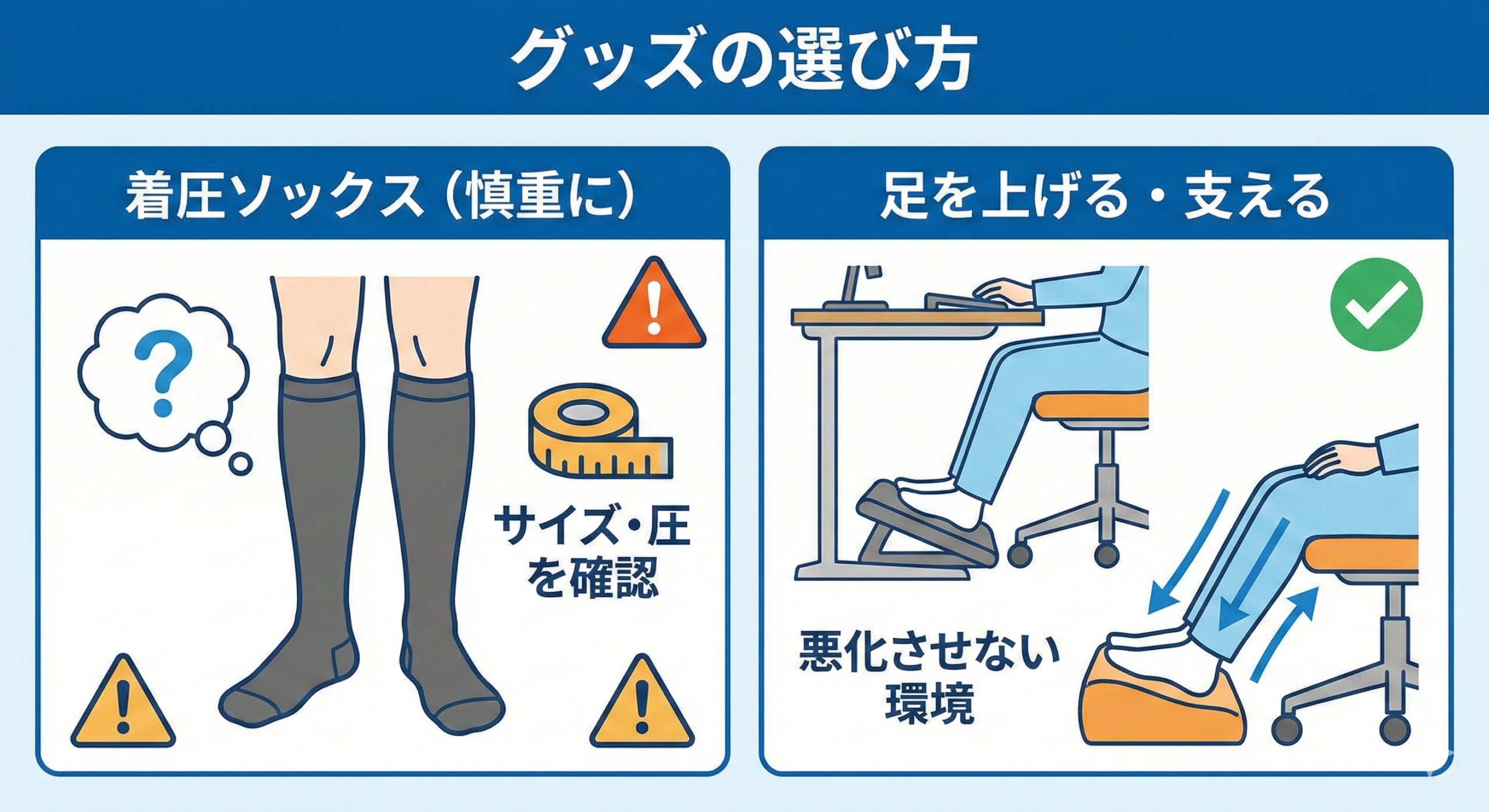 デスクワーク足のむくみひどいときのグッズ|“楽にする”より“悪化させない”視点で選ぶ