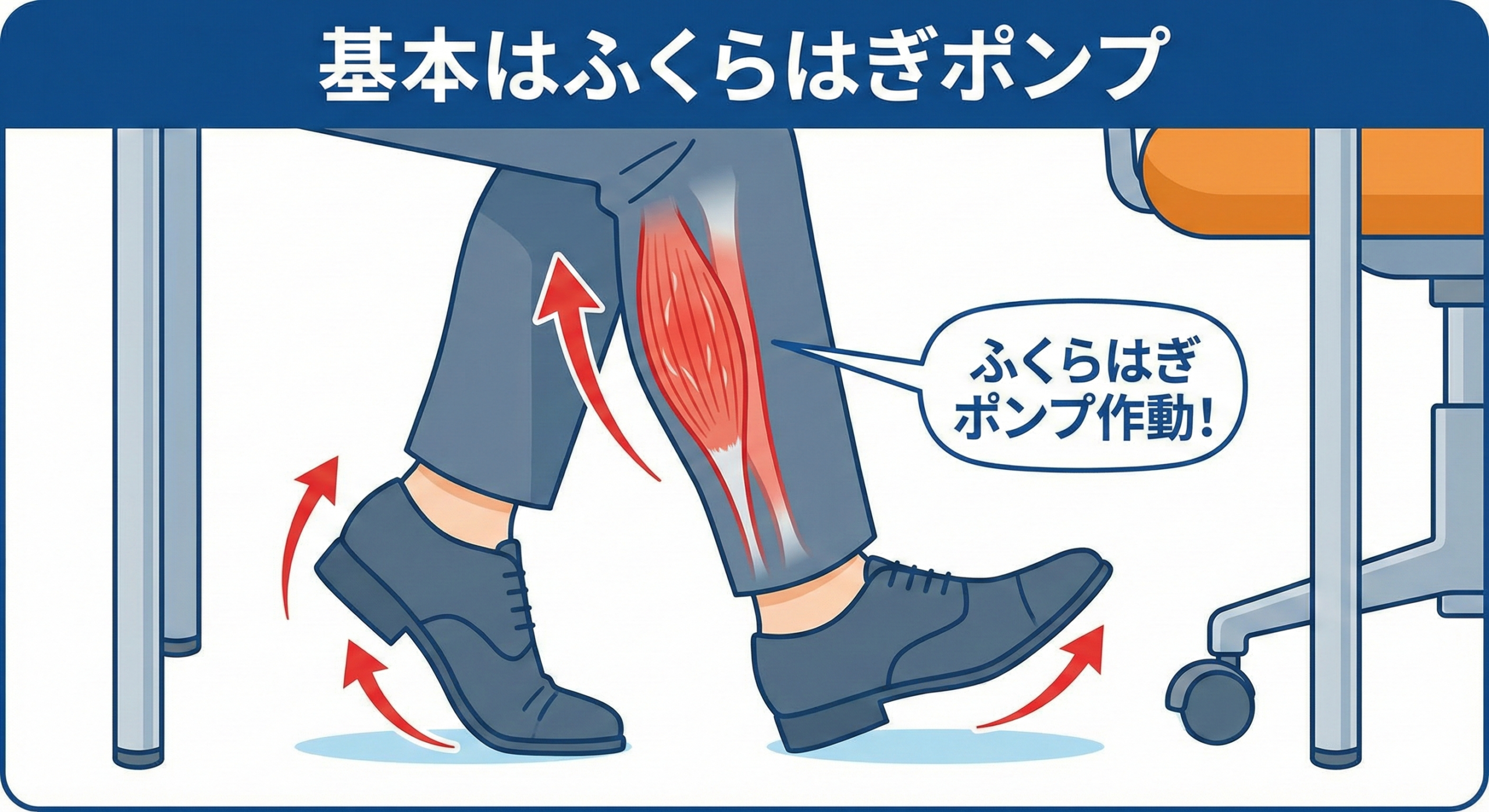 本記事では、仕事の邪魔をせず、座りながらふくらはぎのポンプを再起動させる「つま先上下」や「足首回し」のコツを解説します。