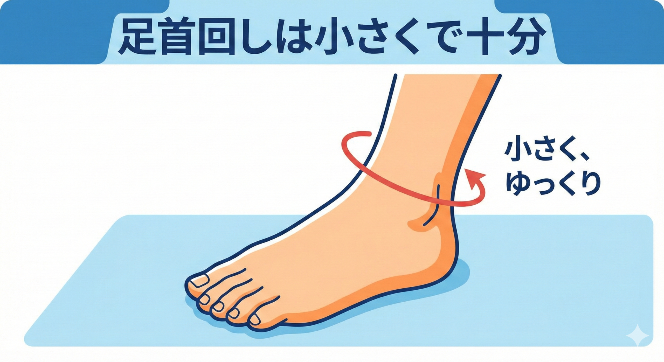 長時間のデスクワークで足首がガチガチに固まっている場合、無理に大きく回そうとするとスジを痛めてしまうことがあります。