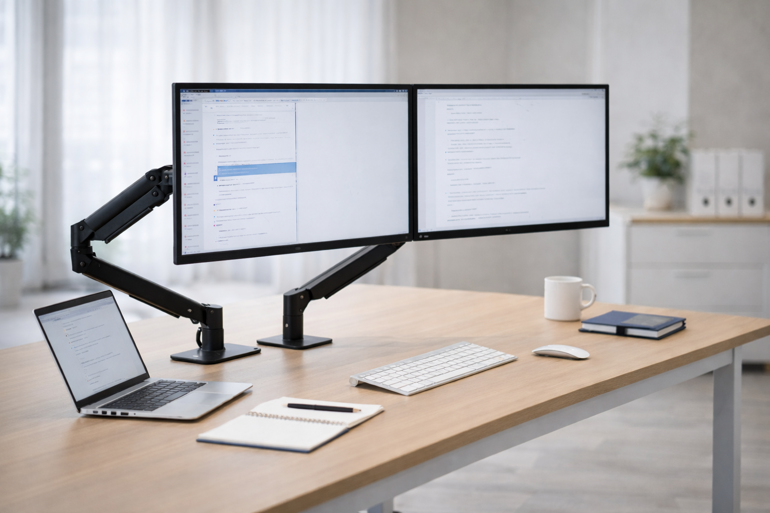 モニターアームは、画面の高さや距離、角度を調整しやすくして、姿勢の崩れを起こしにくい配置を作るためのアイテムです。