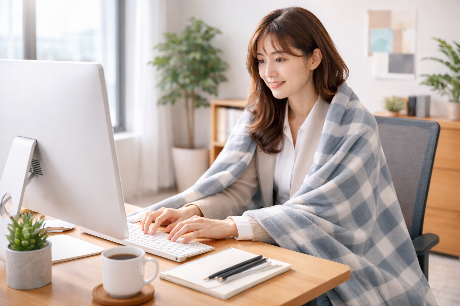ブランケットで足元の冷えを抑えると、体が緊張しにくくなり、集中が続きやすくなる人もいます。