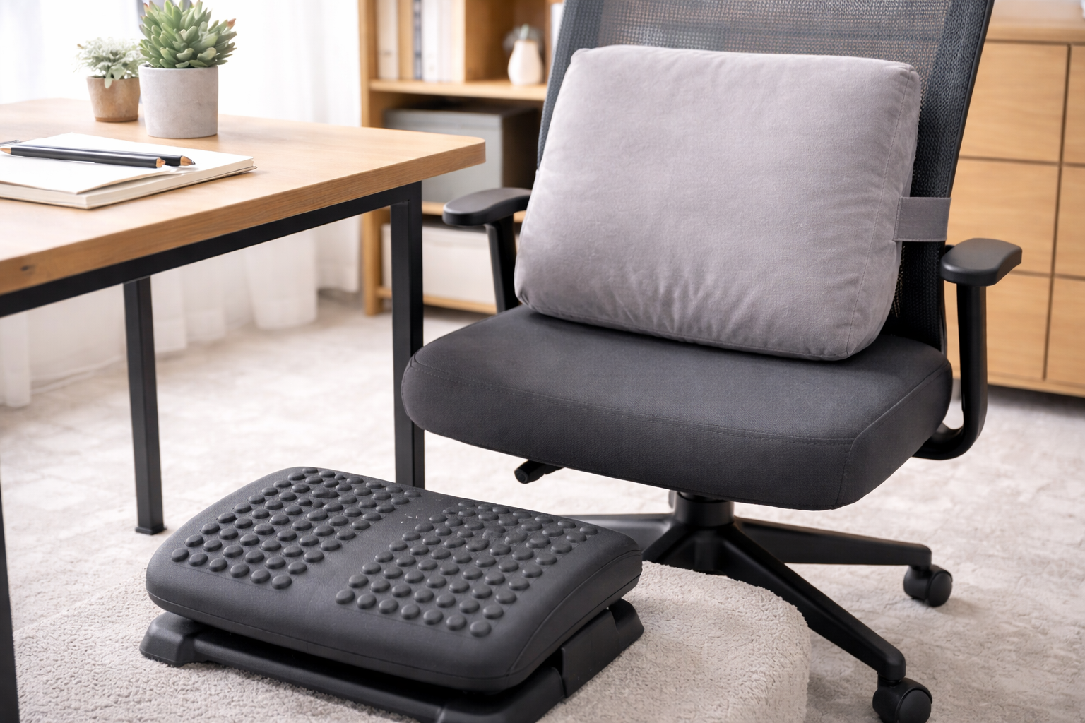 机上台やアーム類は環境を整えるのに強い一方で、体の悩みがある人ほど効果を感じやすいのは「座りの土台」と「足元の安定」を作るアイテムです。